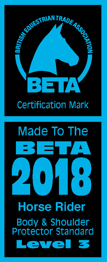 The body protector itself comes in three different label varieties: Green, Orange and Blue. Each label is dependant on the thickness of the foam and is certified under BETA (British Equestrian Trade Association) standards. The most standard and highest form of protection is blue, then orange then green. Hover over or click the different labels to see what each are used for!